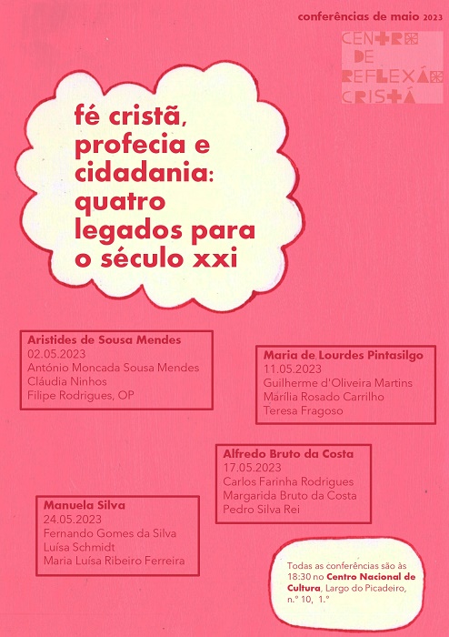 As Conferências de Maio de 2023 sinalizam o percurso de quatro cristãos que, motivados pela sua fé e pela sua relação com Jesus Cristo e com o Deus de Jesus Cristo, foram cada um(a) do seu jeito e nas suas circunstâncias, profetas, tornando presente dimensões fundamentais do Evangelho, e cujo legado pode ser muito inspirador para as jovens gerações que se interrogam sobre o que é ser cristão hoje.