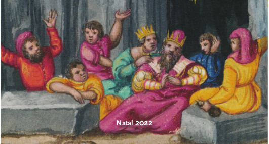 A estranha figura, chegada junto dos livros, pegou numa encadernação antiga, que folheou com cuidado. E ficou algum tempo absorto na leitura, enquanto o antiquário foi até ao escritório para buscar algo de que precisava. Quando regressou, o visitante havia-se sentado numa cadeira de braços e continuava a folhear o livro com muito vagar. E rompeu o silêncio, dizendo: «Tem aqui uma pequena preciosidade – é o “Espelho dos Penitentes”, publicado em 1771, com poemas então inéditos de Frei Agostinho da Cruz, nascido em Ponte da Barca em 1540 e falecido em Setúbal em 1619… Tem aqui um verdadeiro tesouro. Encontrei uma possível prenda de Natal». A alegria do estranho visitante era contida, mas inequívoca. E pediu-me apenas para ouvir o que tinha descoberto naquele momento: “Que saudade de alma e que brandura, / Virgem Senhora minha, se vos deve / Em tempo que paris ó vento, à neve, / O Criador de toda a criatura. // No feno, que ficou na terra dura, / Pisado de animais, lançado esteve / O Menino Jesus, ah! que não teve / Casa, berço, lugar nem cobertura! // Não sou Rei, nem Pastor, que me pareça / Estrela que me guie, Anjo que me chame, / Por isso a vós não vou, de mim não parto. // E não tenho cordeiros que ofereça, / Ouro, incenso, mirra, o amor que inflama, / Com que vos visitar, Virgem, no parto!”. Depois de algum tempo, olhou pela porta e verificou que a chuva abrandara. Despediu-se serena e misteriosamente e desejou Boas Festas. Mas antes de sair, tirou lentamente do bolso da gabardina um envelope de cor parda com nada escrito no exterior e entregou ao antiquário – dizendo apenas: “Pode ser que um dia lhe sirva”, e desapareceu.