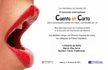 no 3º concurso internacional “Cuento en corto” com o vídeo “A História da Velha”…