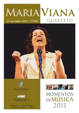 Notícias MOMENTOS DE MÚSICA Maria Viana Quarteto dia 13 de Novembro no auditório do Banco de Portugal 8 Novembro, 2013 Programa Evento divulgado no âmbito do protocolo assinado entre o Centro Nacional de Cultura e o Banco de Portugal. Partilhar