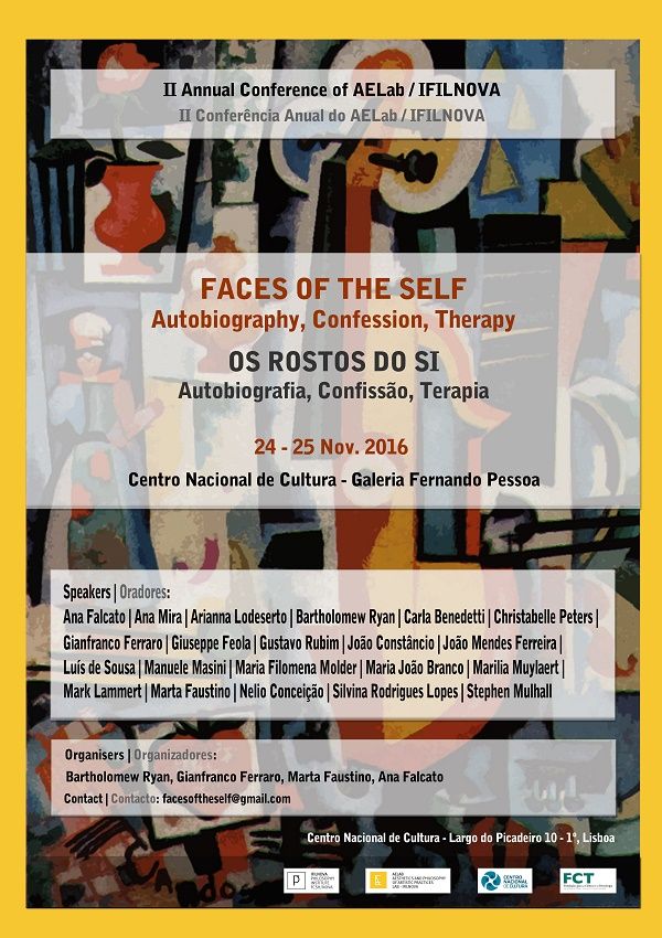 As múltiplas e complexas formas de representação e revelação do si – nas quais as fronteiras entre disciplinas se esbatem – têm uma história rica e muitas vezes negligenciada. Esta conferência internacional aborda as intersecções entre a filosofia, a literatura, as artes e a terapia, através do prisma de certas formas de auto-revelação, como a autobiografia e a confissão. O título, “Rostos do Si” aponta para a relação enigmática entre verdade e mentira, escondimento e revelação, máscara e desmascaramento da ideia de uma pessoa. A nossa discussão poderá focar-se, não apenas nos textos filosóficos quasi-autobiográficos mais conhecidos – como as Meditações de Marco Aurélio, as Confissões de Santo Agostinho, as Meditações de Descartes, o Ponto de Vista de Kierkegaard, o Ecce Homo de Nietzsche, Cultura e Valor de Wittgenstein ou Circunfissão de Derrida -, mas também em poetas, escritores, artistas e figuras históricas, cujas cartas, imagens, documentos e jornais nos ajudam a obter uma compreensão mais nuanceada da forma como a consciência, o género, a raça, a sexualidade, e a (des-)localização operam na busca de expressão e absolvição.