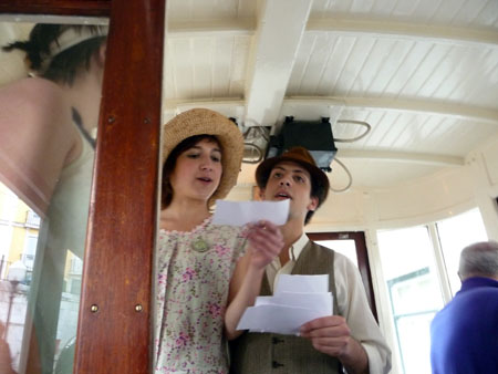 Foram lidos poemas de vários escritores portugueses no interior dos eléctricos 28 e 12 e nos elevadores da Glória e Santa Justa.