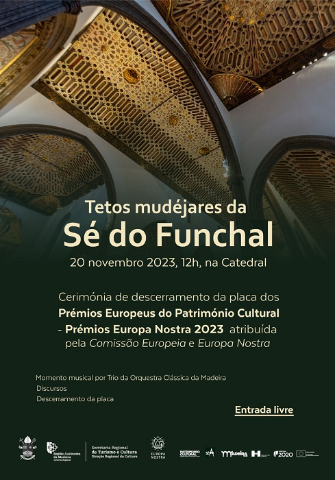No dia 20 de novembro, pelas 12h00, terá lugar a Cerimónia de descerramento da placa evocativa da atribuição do Prémio Europeu do Património Cultura / Prémio Europa Nostra 2023, na categoria Conservação e Adaptação a Novos Usos, à Recuperação dos Tectos Mudéjares da Catedral do Funchal, presidida por Sua Excelência Reverendíssima Dom Nuno Brás, Bispo da Diocese do Funchal.